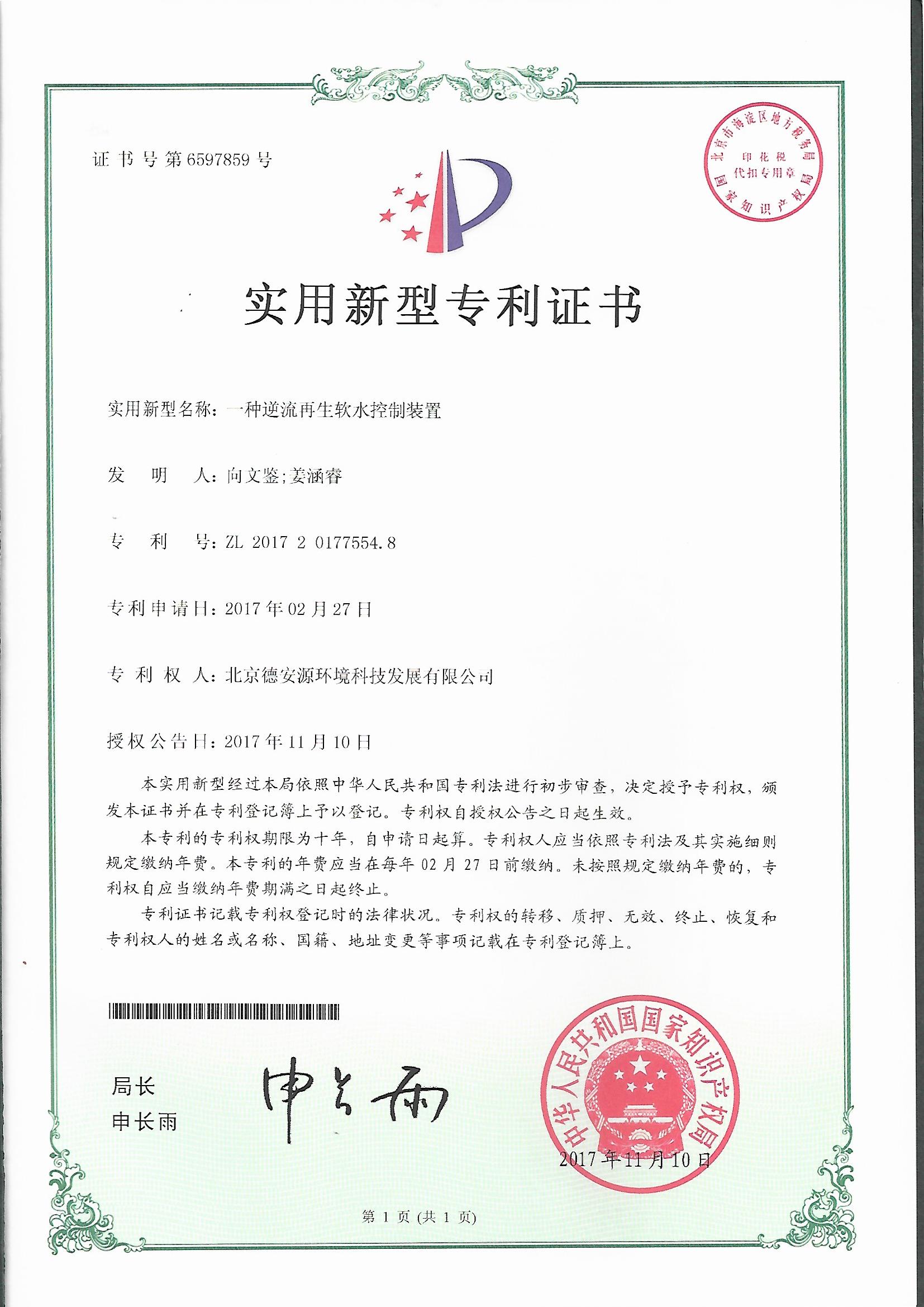 一種逆流再生軟水控制裝置